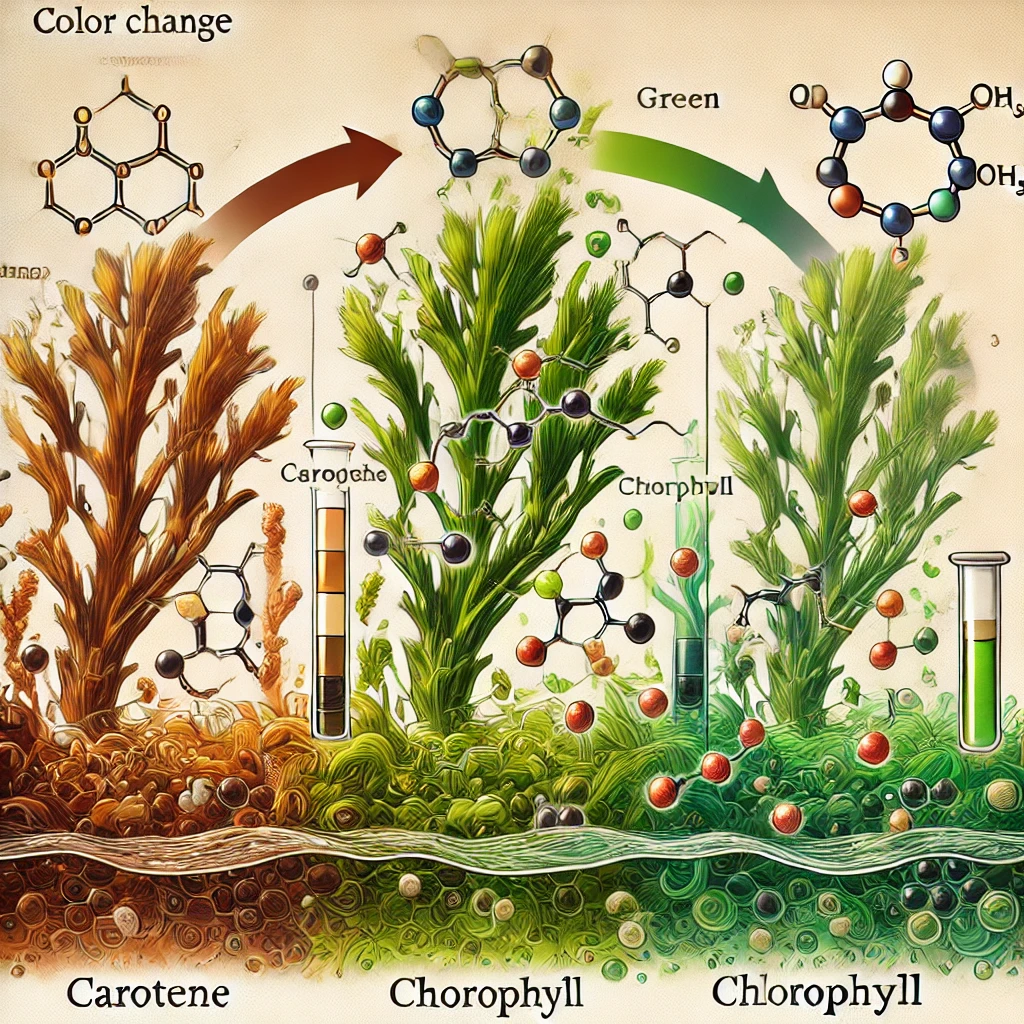 미역이 뜨거운 물에 담그자마자 초록색으로 변하는 이유는 바로 클로로필의 색소가 우세하기 때문입니다. 카로텐은 본래 갈색을 띠지만, 클로로필은 초록색을 띠며, 이 두 색소가 함께 있을 때 클로로필의 초록색이 우세하게 나타납니다. 이는 물미역이 생리적으로 더 많은 광합성 색소인 클로로필을 포함하고 있기 때문입니다.